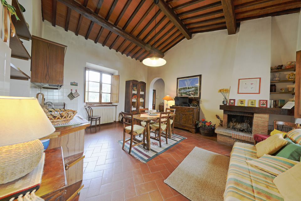 La Scala ( 2+2 posti letto) situato al primo piano è costituito da un soggiorno con angolo cottura, divano letto matrimoniale e caminetto, una camera matrimoniale con letto aggiunto,
